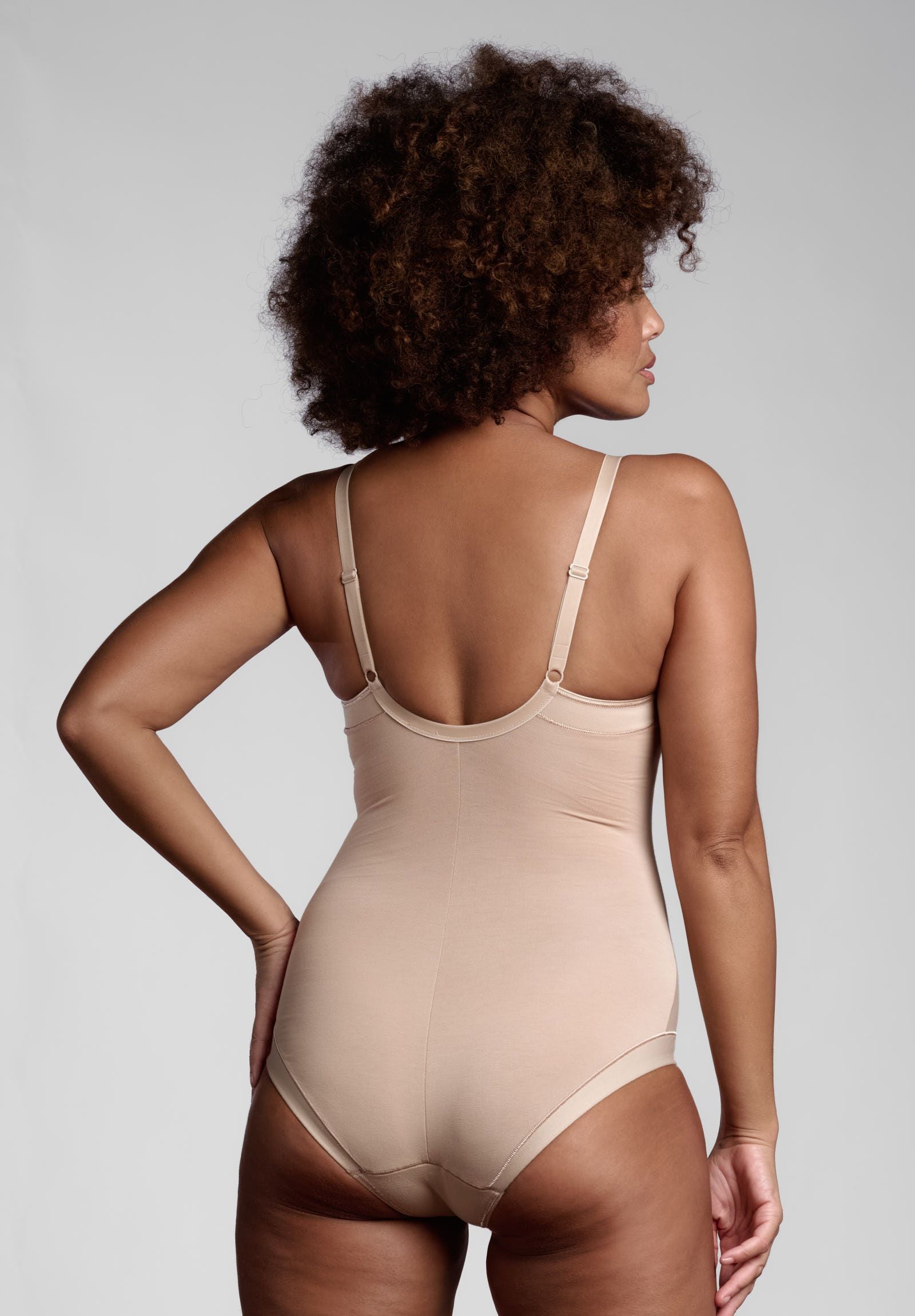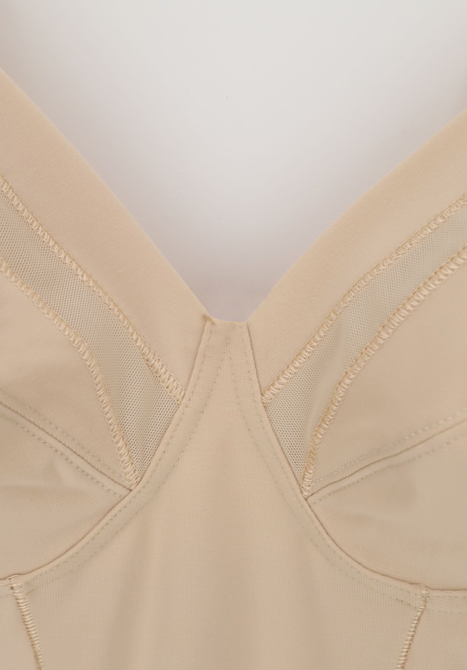 Il body senza ferretto Cotone sulla pelle è realizzato in morbido tessuto di cotone elasticizzato per donare il massimo comfort.Le coppe con ali regalano sostegno ma allo stesso tempo eleganza con gli inserti in tulle. Doppiato sul davanti risulta contenitivo e modellante. Chiusura con ganci.