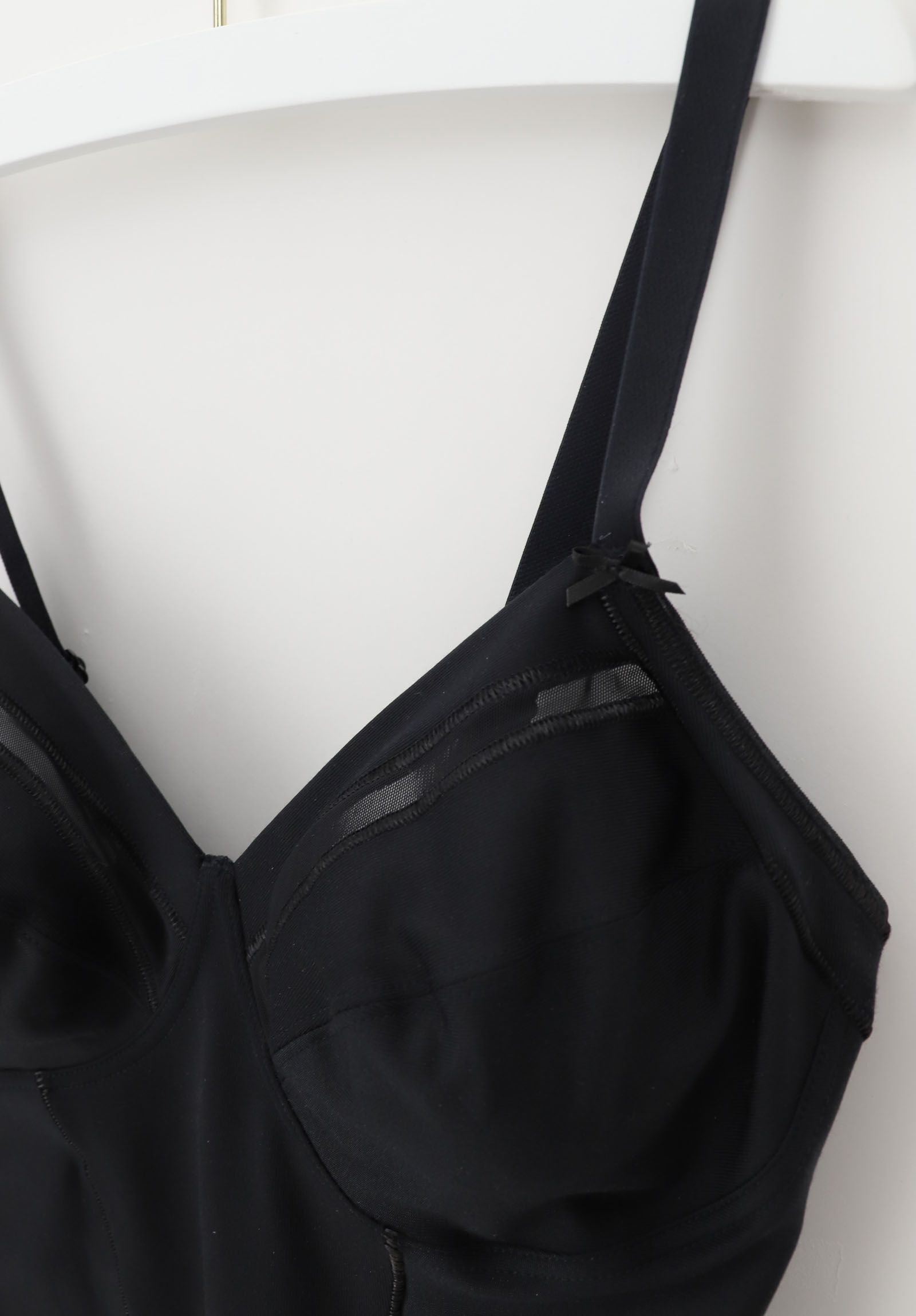 Il body senza ferretto Cotone sulla pelle è realizzato in morbido tessuto di cotone elasticizzato per donare il massimo comfort.Le coppe con ali regalano sostegno ma allo stesso tempo eleganza con gli inserti in tulle. Doppiato sul davanti risulta contenitivo e modellante. Chiusura con ganci.