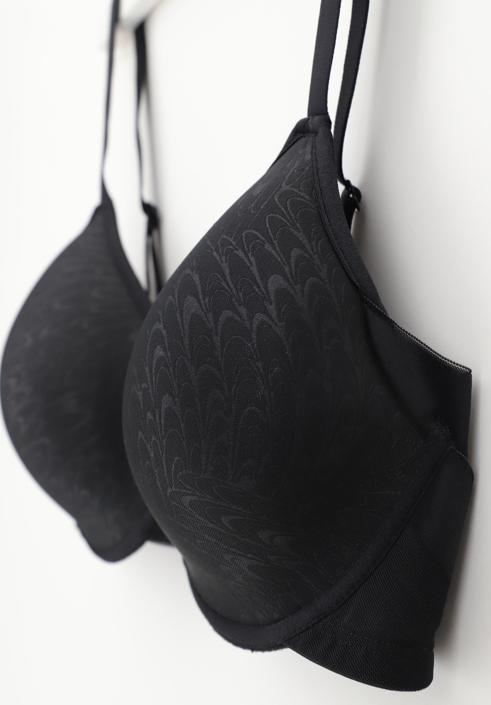 Balconcino con ferretto con coppe in tessuto Spacer preformate senza cuciture, traspiranti, leggere, e indeformabili. Il fusto è realizzato in un confortevole tulle trasparente con bordo a taglio vivo che non segna e regala estremo comfort.L'innovativo incrocio nel fianco offre un delicato contenimento del seno.