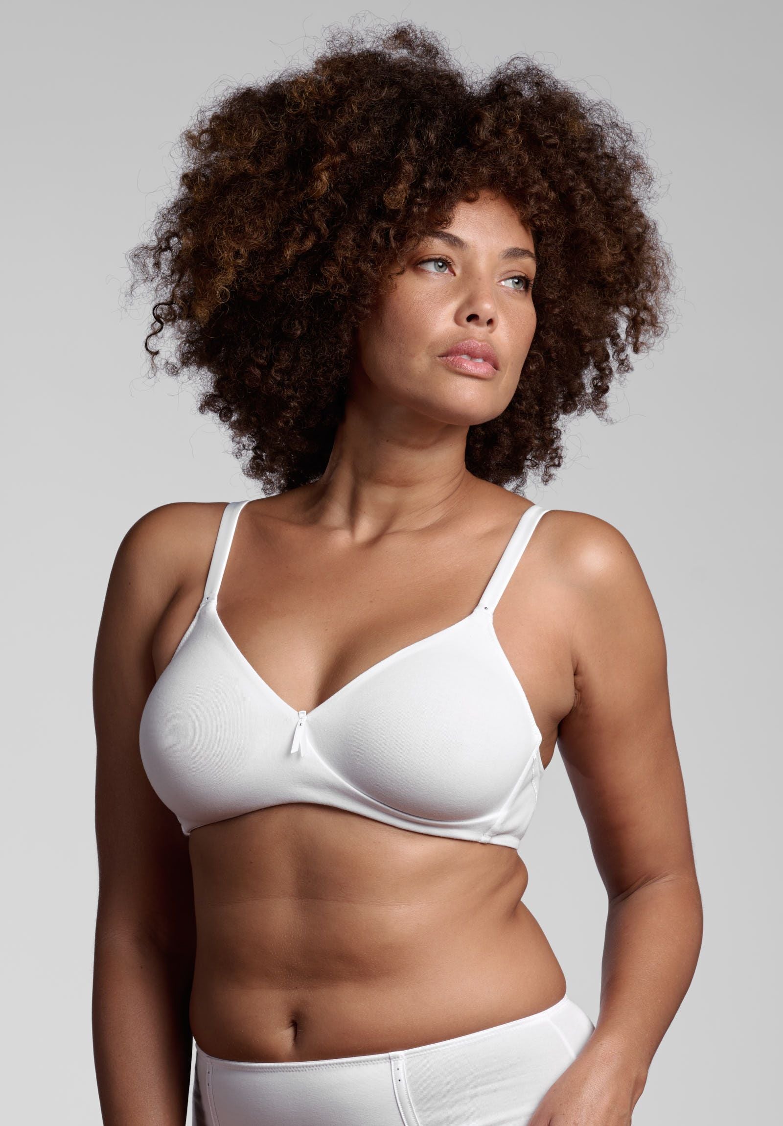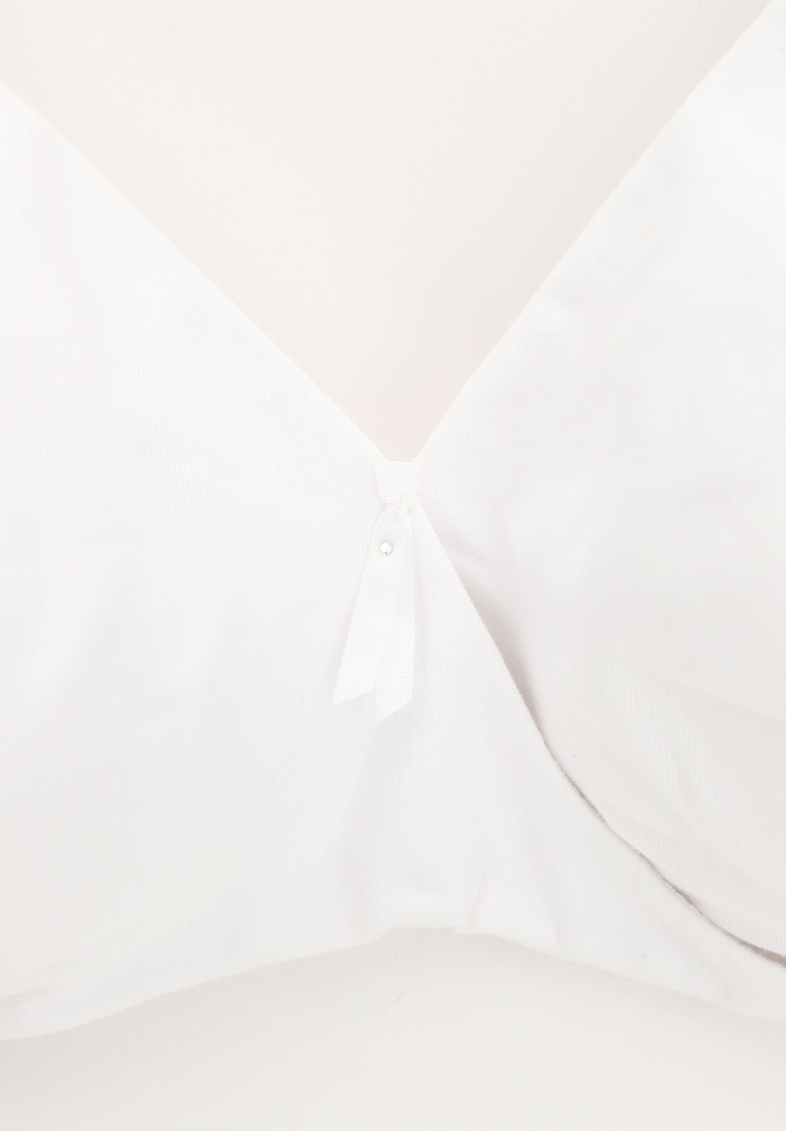 Reggiseno incrociato senza ferretto in tessuto di cotone per un naturale effetto di freschezza.Coppe preformate in cotone doppiato, garanzia di un ottimo sostegno e comfort assoluto.Le coppe sono perfettamente specchiate ed assottigliandosi contornano il seno opposto sostenendolo quasi come un morbido ferretto. Contemporaneamente l’incrocio separa il seno in modo naturale.Le eleganti spalline in raso e le raffinate applicazioni in strass impreziosiscono il capo