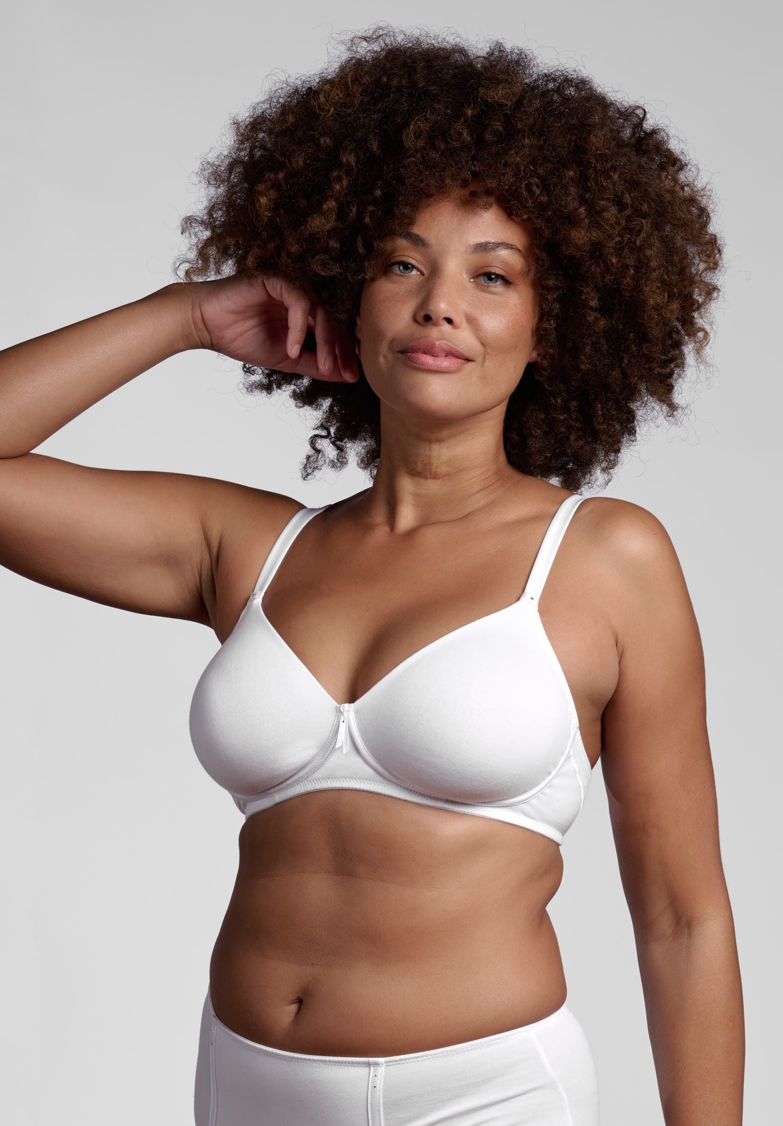 Reggiseno senza ferretto in tessuto di cotone per un naturale effetto di freschezza sulla pelle.Le coppe in cotone, doppiate e preformate, offrono un ottimo sostegno ed un piacevole comfort. Grazie alla sua linearità e all'assenza di cuciture, è un capo che risulta invisibile sotto gli abiti.Le raffinate spalline in raso e le applicazioni in strass completano l'opera.