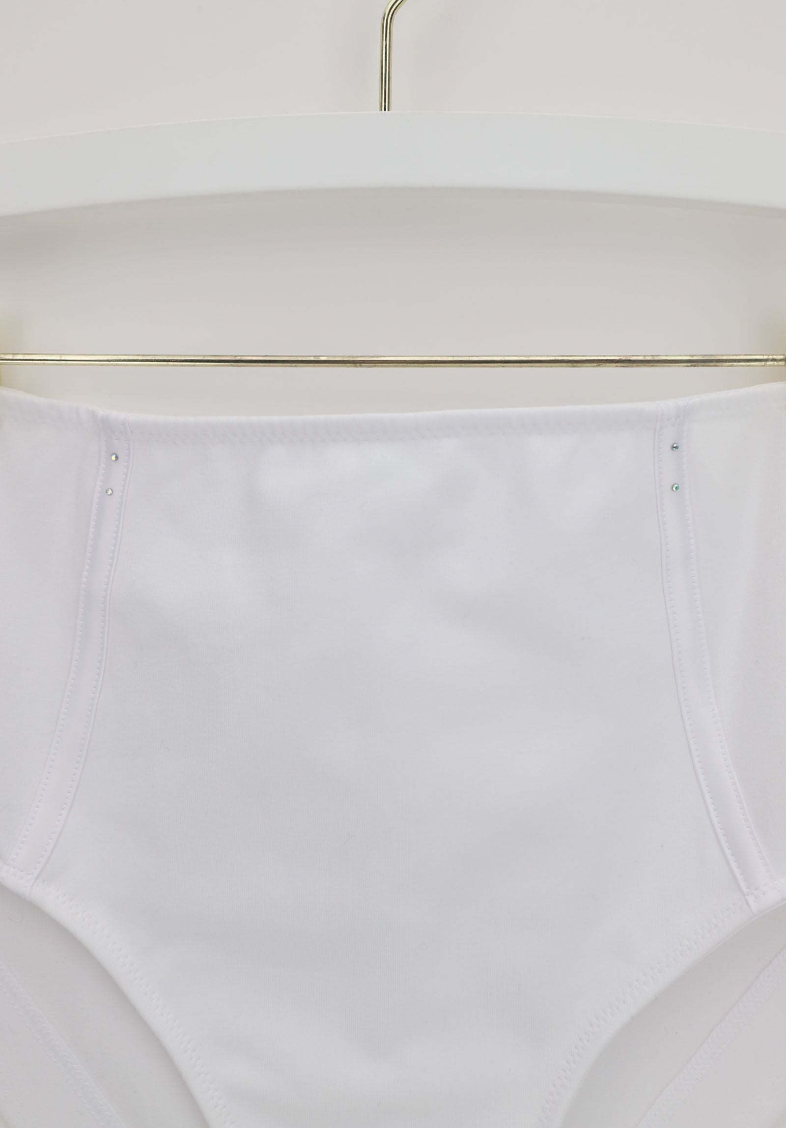 Mutandina alta in cotone per un naturale effetto di freschezza sulla pelle. Il davanti è doppiato per offrire un delicato e confortevole effetto modellante.Raffinate applicazioni in strass impreziosicono il capo.
