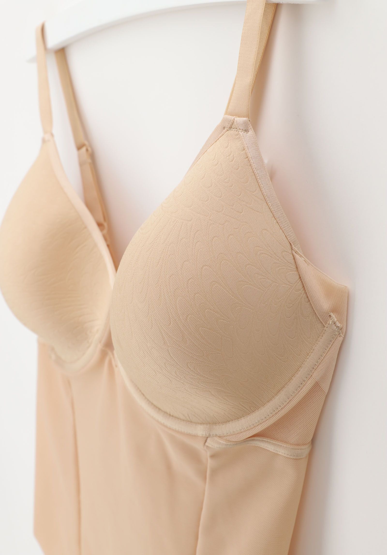 Body con ferretto, con coppe realizzate nell'innovativo tessuto Spacer, preformate senza cuciture. Risultano molto traspiranti, leggere e indeformabili. Il davanti è in tulle doppiato per un effetto delicatamente contenitivo. Il dietro è in tulle trasparente con bordo a taglio vivo che non segna sotto agli abiti.