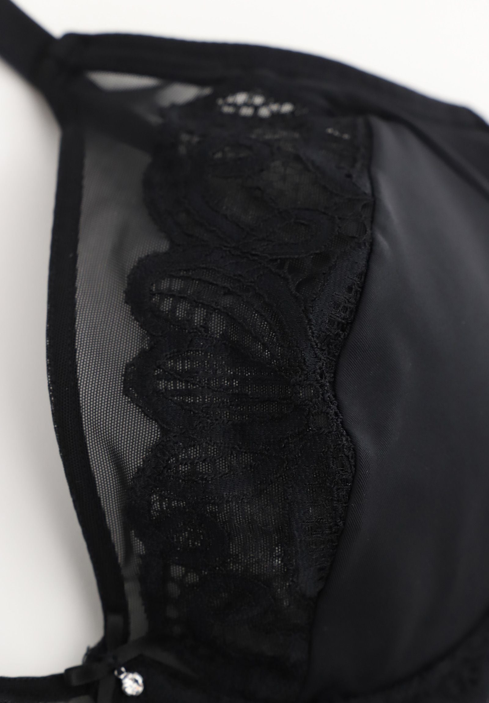 Reggiseno senza ferretto realizzato in morbida microfibra con le coppe foderate in cotone. Nella parte superiore della coppa risalta un raffinato pizzo cordonetto, doppiato da un leggero e morbido tulle.Un piccolo fiocchetto con strass illumina il centro del reggiseno e rende ancora più elegante il capo.Il modello Belseno ha le ali che abbracciano, modellano e sostengono il seno per il comfort più assoluto.