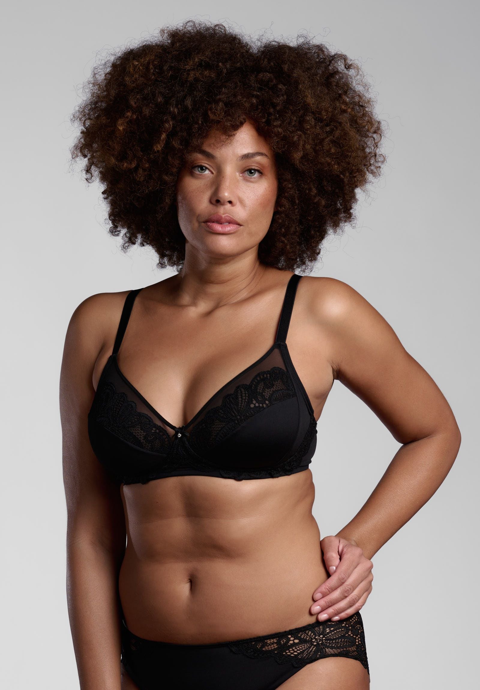 Reggiseno senza ferretto realizzato in morbida microfibra con le coppe foderate in cotone. Nella parte superiore della coppa risalta un raffinato pizzo cordonetto, doppiato da un leggero e morbido tulle.Un piccolo fiocchetto con strass illumina il centro del reggiseno e rende ancora più elegante il capo.Il modello Belseno ha le ali che abbracciano, modellano e sostengono il seno per il comfort più assoluto.